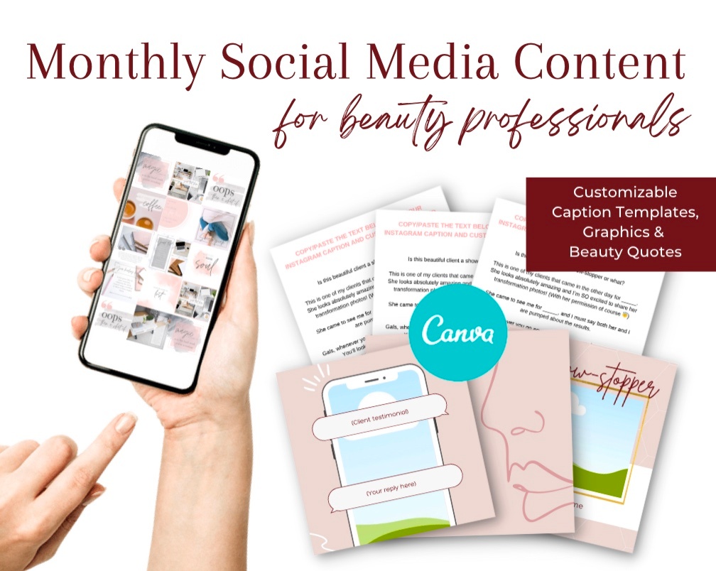 * 30 Customizable caption templates specific to the beauty industry and services