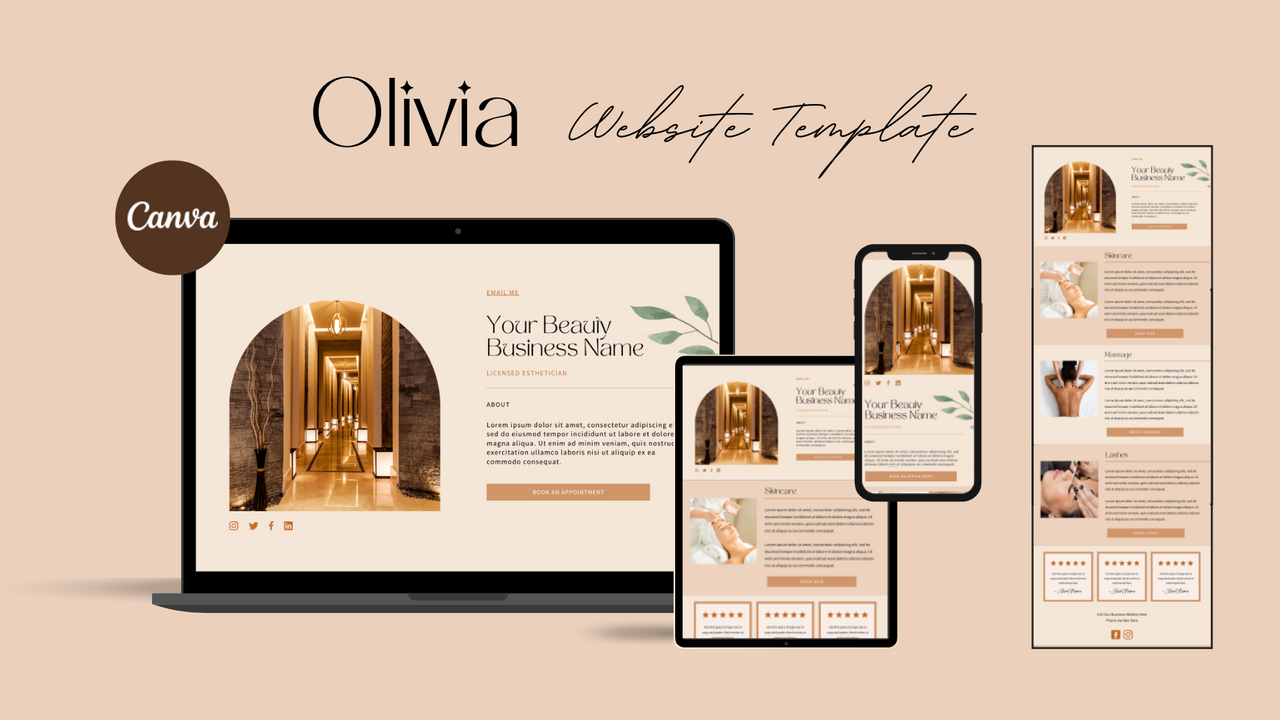 Fully Designed Olivia Website Template (100% customizable in Canva)